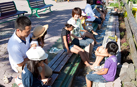 天然温泉の足湯。夏の暑い時期には、地下水の冷水に変わるんだって!気持ちい〜